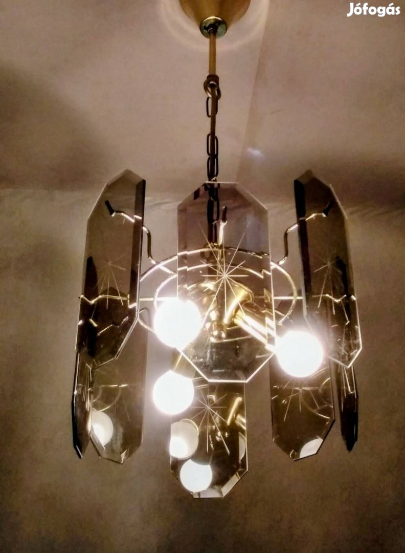 3db égős, 8 db csiszolt csillagmintás füstüveges lapokkal, hangulatos mennyezeti lámpa.