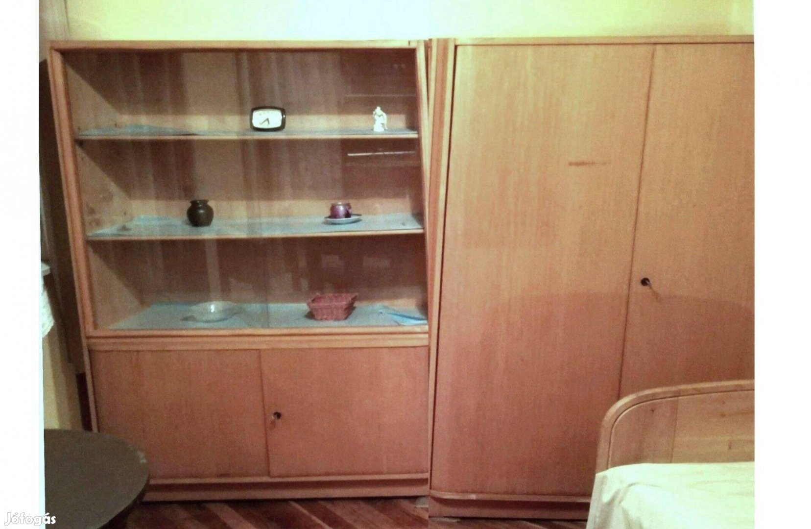 Eladó a képen látható retro szekrénysor 36,000.-Ft-ért. Akasztós szekrény, könyvszekrény
