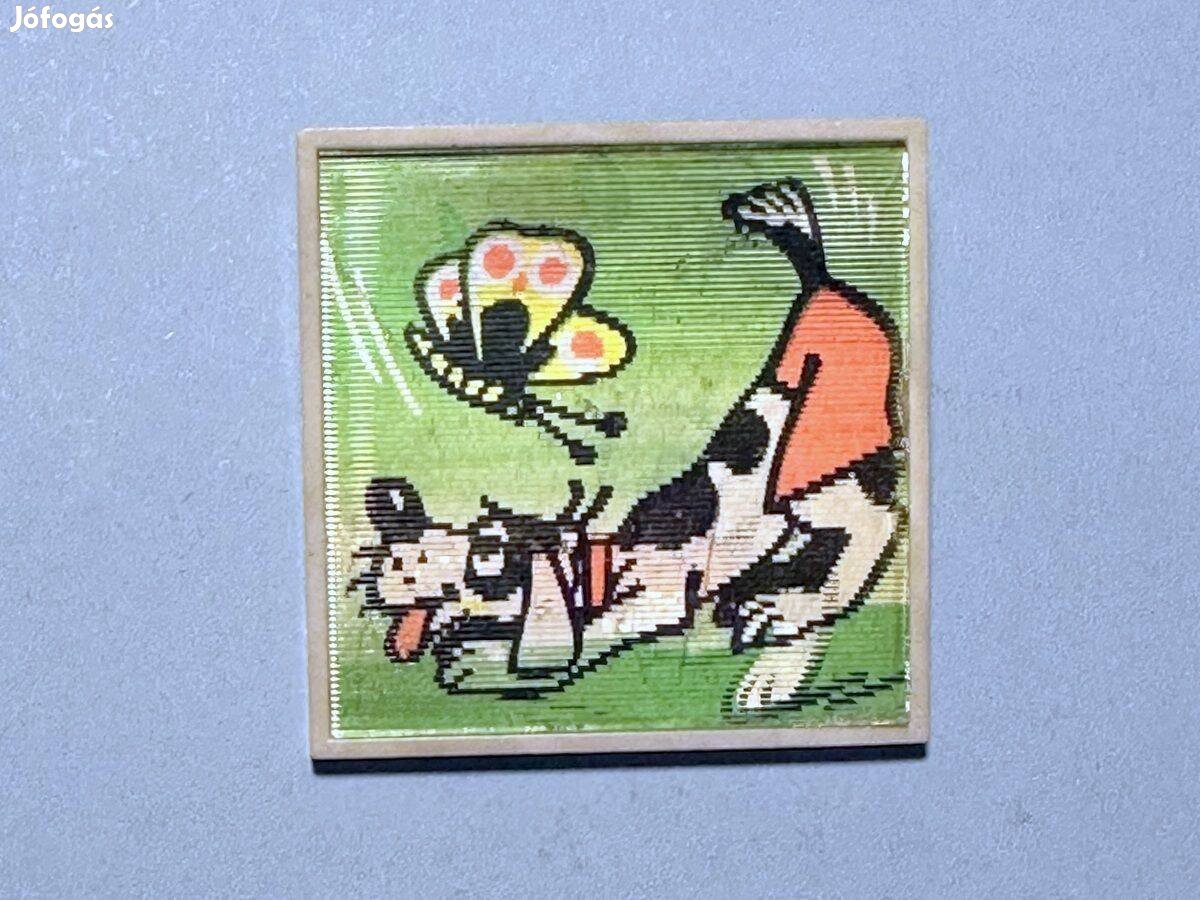 Retro szovjet gyerek kitűző Bobik rajzfilm figura látogatóba megy