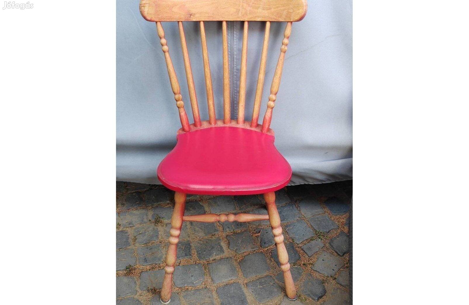 Retro támlás szék, piros, ülőrész műbőr borítású, stabil, jó állapotú.