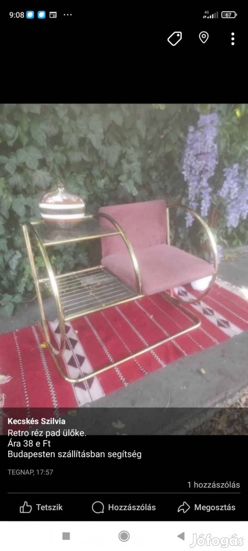 Retro csővázas pad , arany színű.