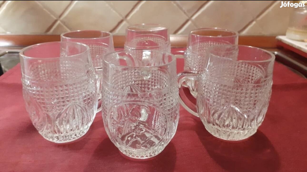 6 db készlet . Sajnos az egyik pohár szája sérült