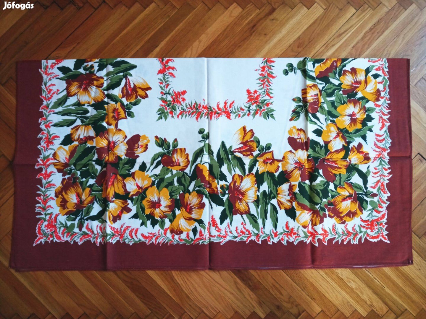 Retró virágmintás vászon abrosz asztalterítő 112x118 cm új