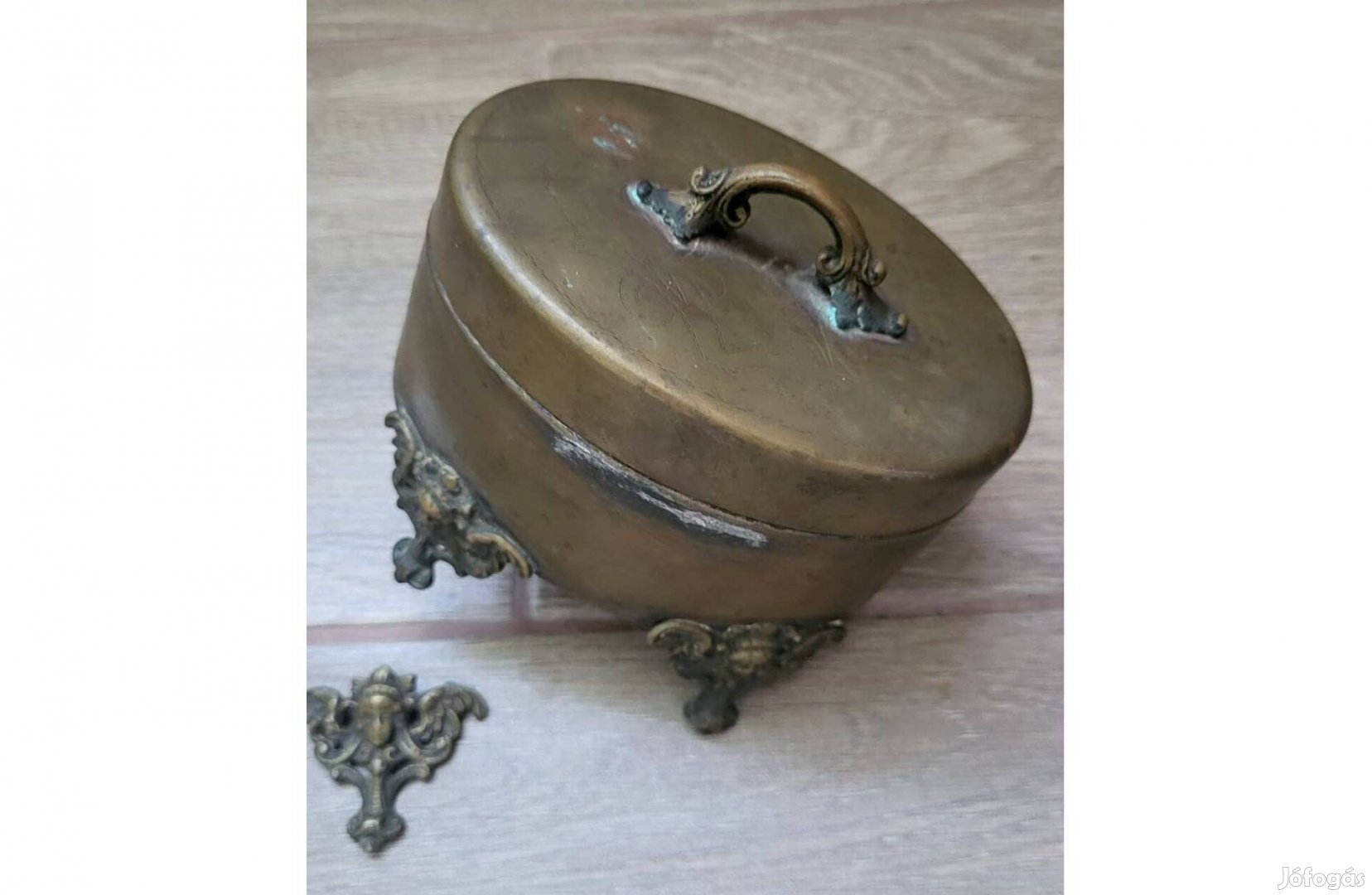 Réz kicsi ládika, tartó. Egyik lába leesett, de nem törött. Visszaragasztható.