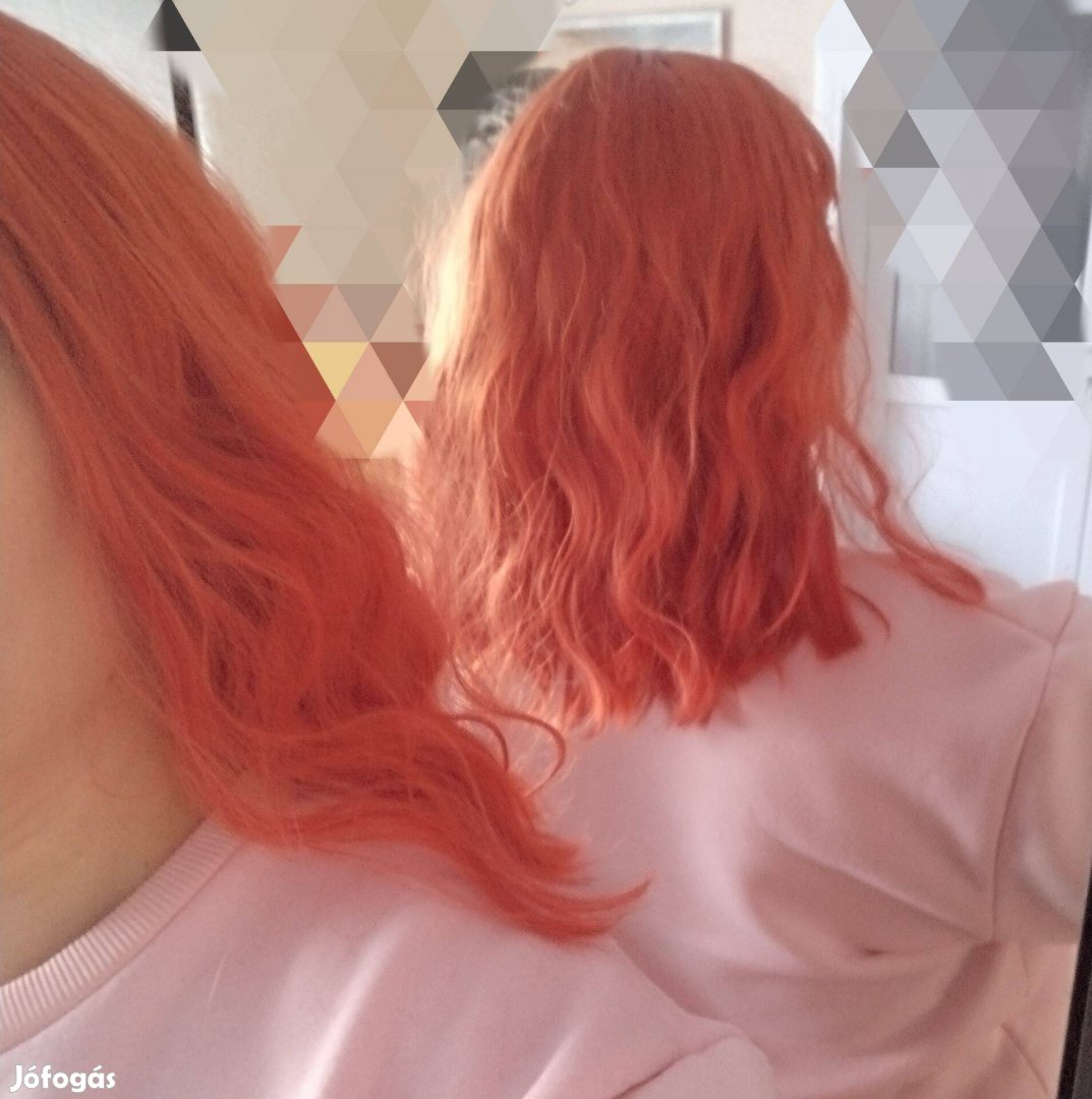 Rézvörös paróka eladó. Új. Szállítani nem tudom. Átvehető a Westendnél személyesen. A színét az 1. fotó adja vissza legjobban. Telefonon lehet hívni.