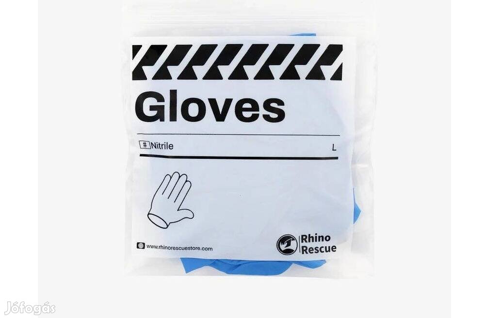 Eladó új, bontatlan Rhino Rescue nitril kesztyű, párban csomagolt kivitelben.