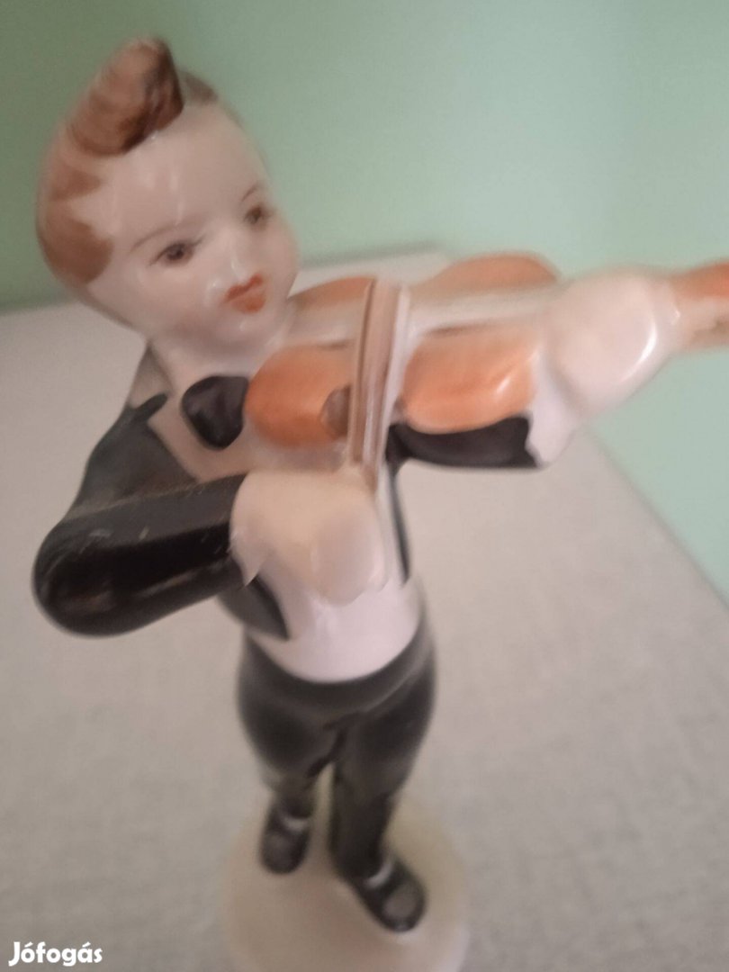 Ritka Hollóházi porcelán figura hegedűs fiú jelzett 60as évekből