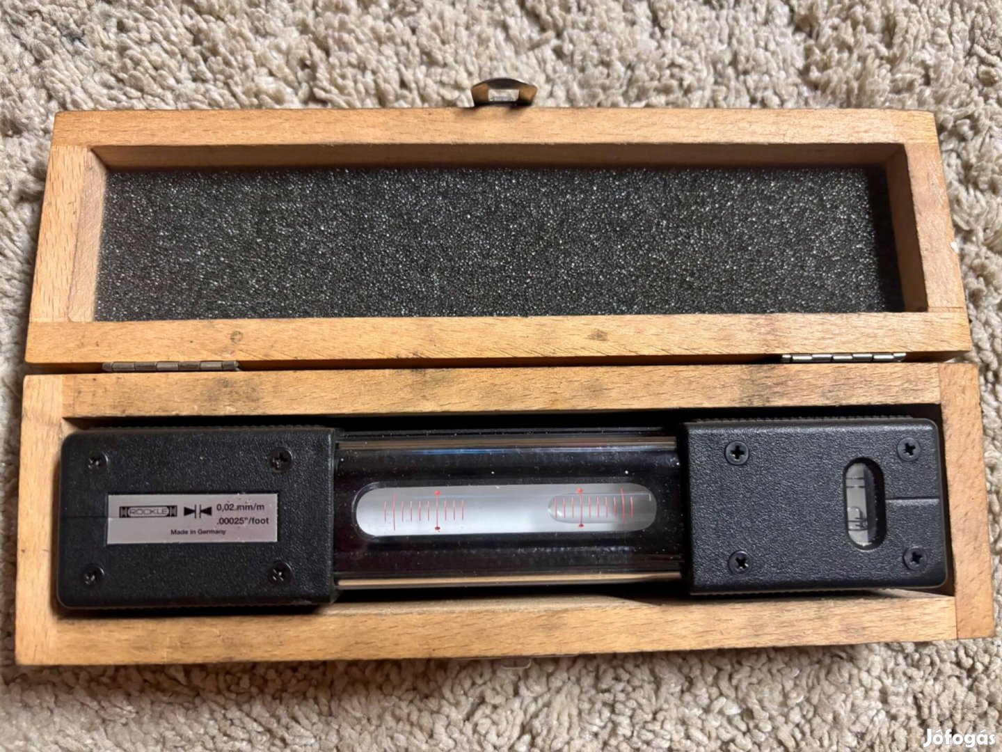 Eladó egy kiváló állapotú, német gyártmányú Roeckle típusú nagy pontosságú precíziós vízmérték. Elsősorban szerszámgépek (esztergák, marógépek), mérőasztalok és precíziós felületek pontos vízszintezésére és beállítására alkalmas professzionális mérőműszer.