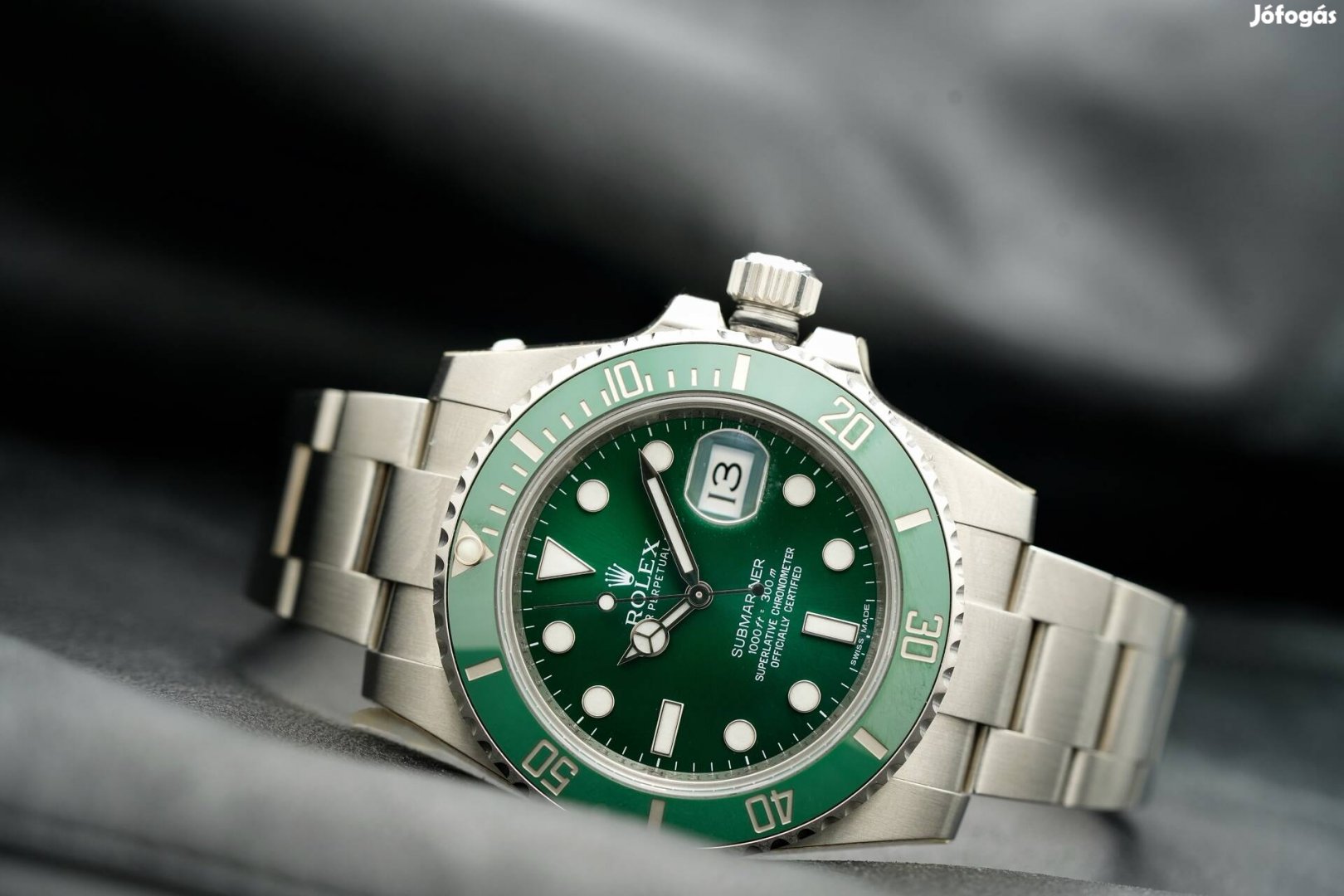 A már nem gyártott legendás Zöld színű submariner alias "Hulk" a -szerintem - gyűjtőibb MK1 számlappal. Az óra vadiúj, fóliás, hordatlan- igazán ritkán láthatunk ilyen kincseket.