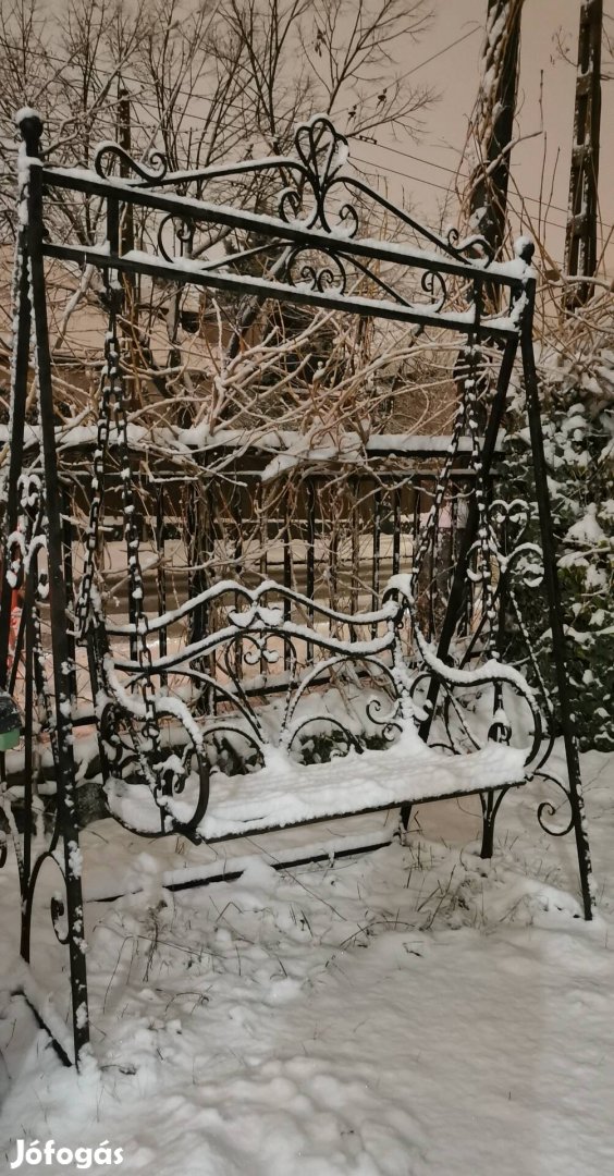Ez a kivételes hintaágy klasszikus formavilágával és aprólékosan kidolgozott részleteivel valódi különlegesség. Masszív vas szerkezete nemcsak impozáns megjelenést kölcsönöz, hanem kiemelkedő stabilitást és hosszú élettartamot is biztosít. A díszes, ívelt motívumok és a gondosan megmunkált részletek elegáns, mégis meghitt hangulatot teremtenek bármely kertben vagy teraszon.