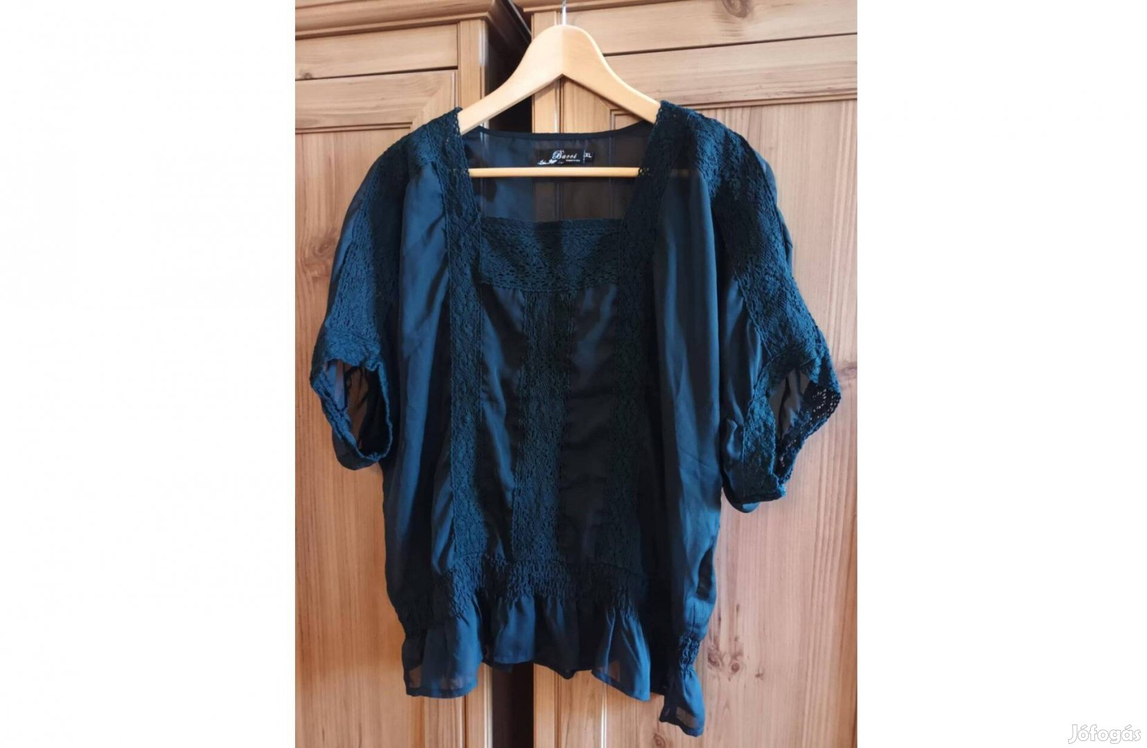 Rövid ujjú fekete blúz (XL)
