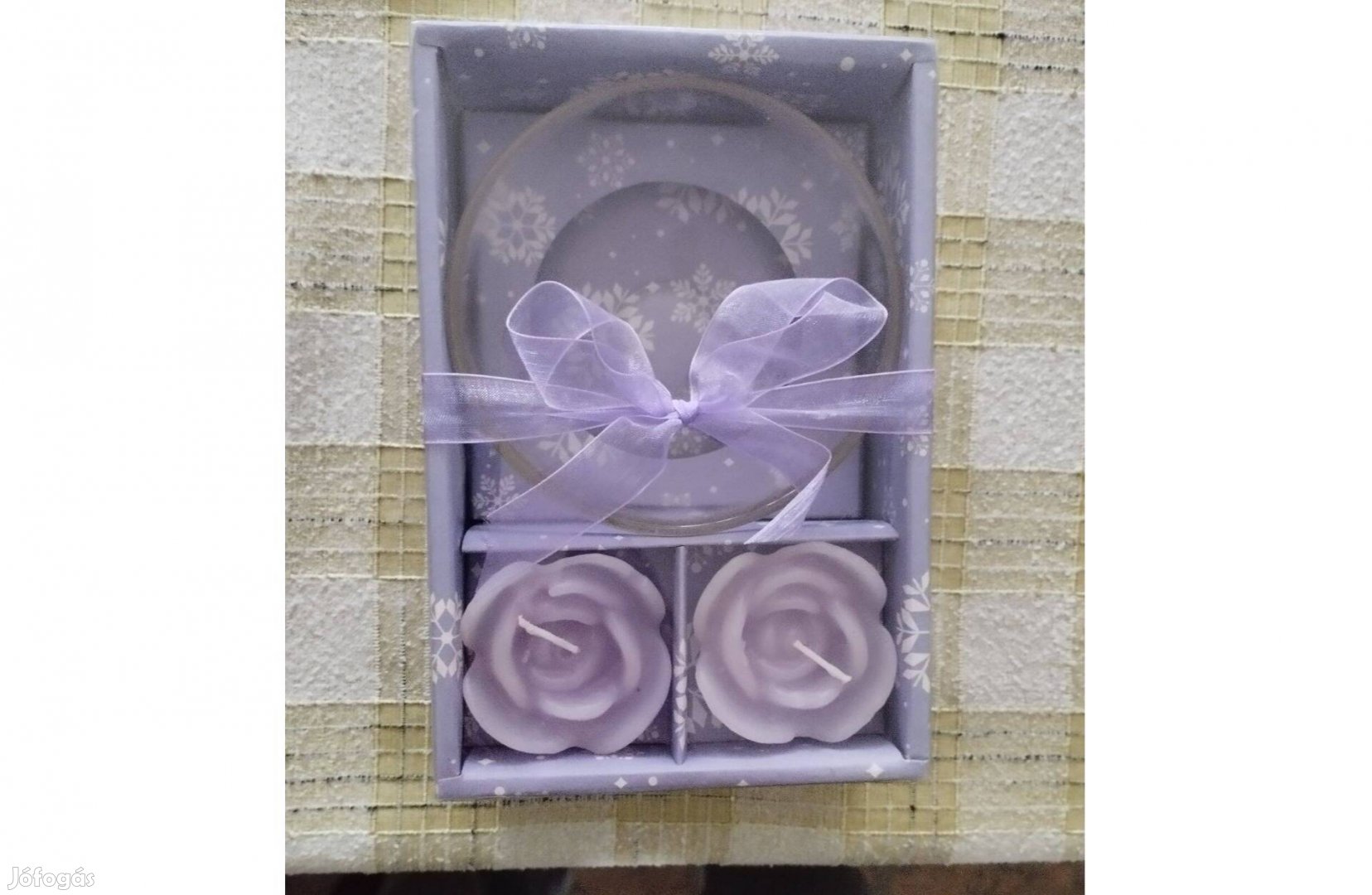 Viasz gyertya (2db rózsa formájú) + üveg alátét