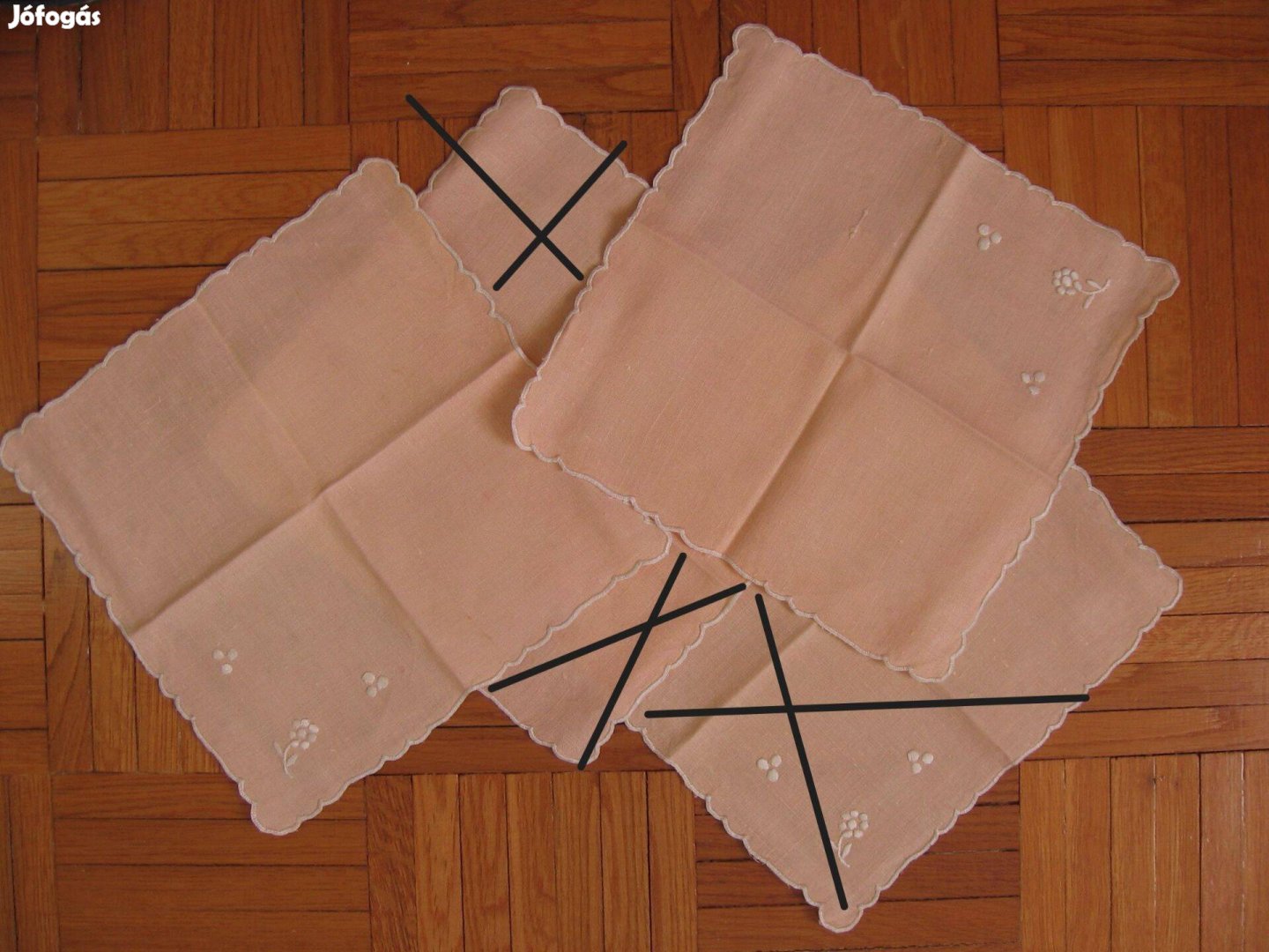 Rózsaszín, hímzett vászon zsebkendő, 2 db