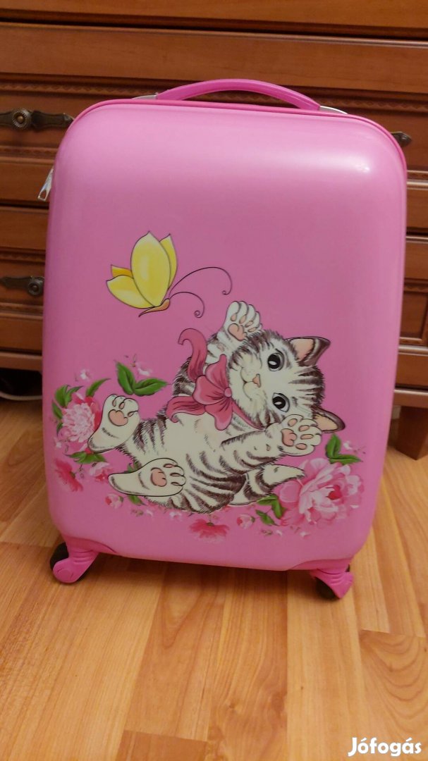 Eladó a képen látható rózsaszín cicás lány bőrönd.