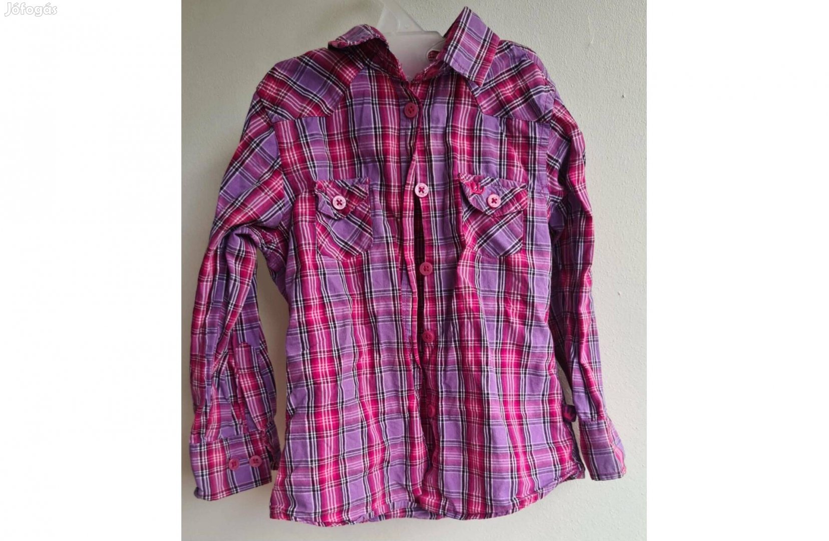 Hibátlan, szép állapotú, kislány rózsaszín-lila kockás blúz/ing eladó.