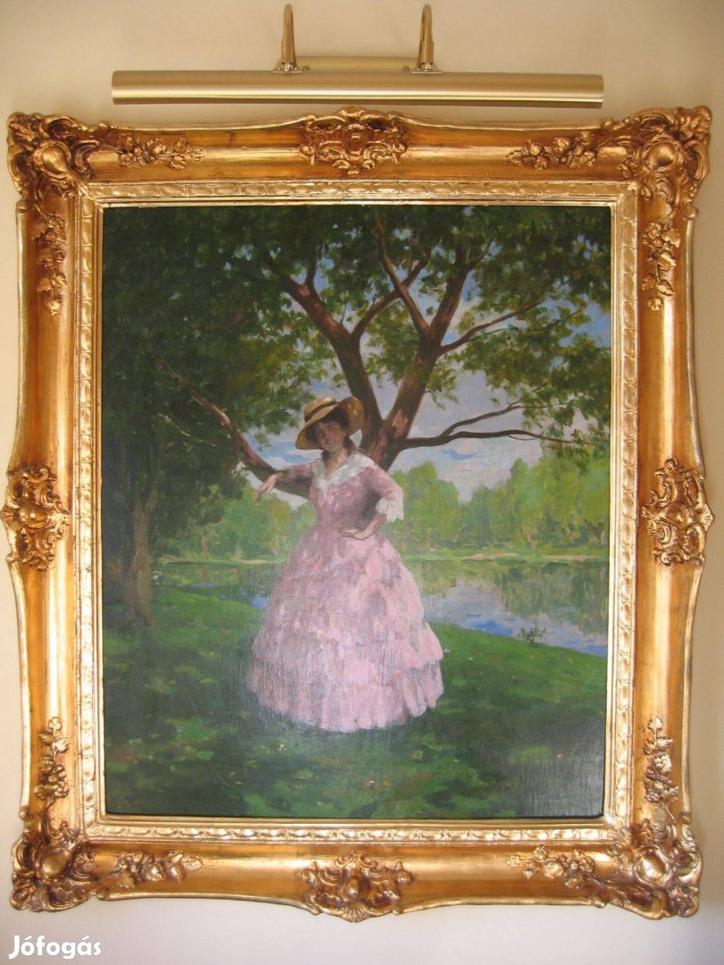 Nagy Vilmos festménye Rózsaszin ruhás hölgy olaj vászon festménye, kifogástalan állapotban , gyönyörű kerettel. A kép mérete 110x80 cm. A festőről bőven található adat a neten.