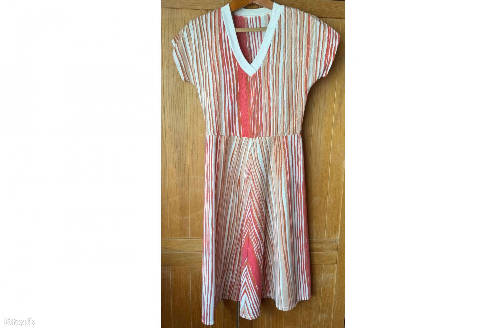 Újszerű kiváló állapotban lévő, nagyon kényelmes, rövid ujjú, női ruha eladó. Felső része V nyakú, karcsúsított fazonú. A ruha belebújós, szoknyája A vonalú.