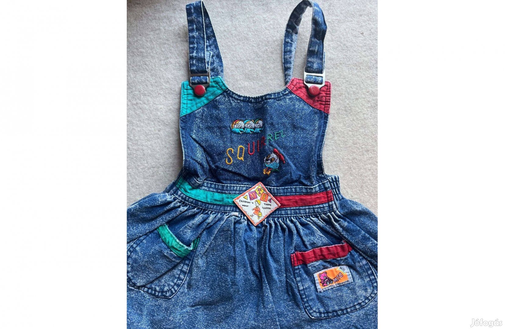 Színe: Farmer kék, színes, gépi hímzés