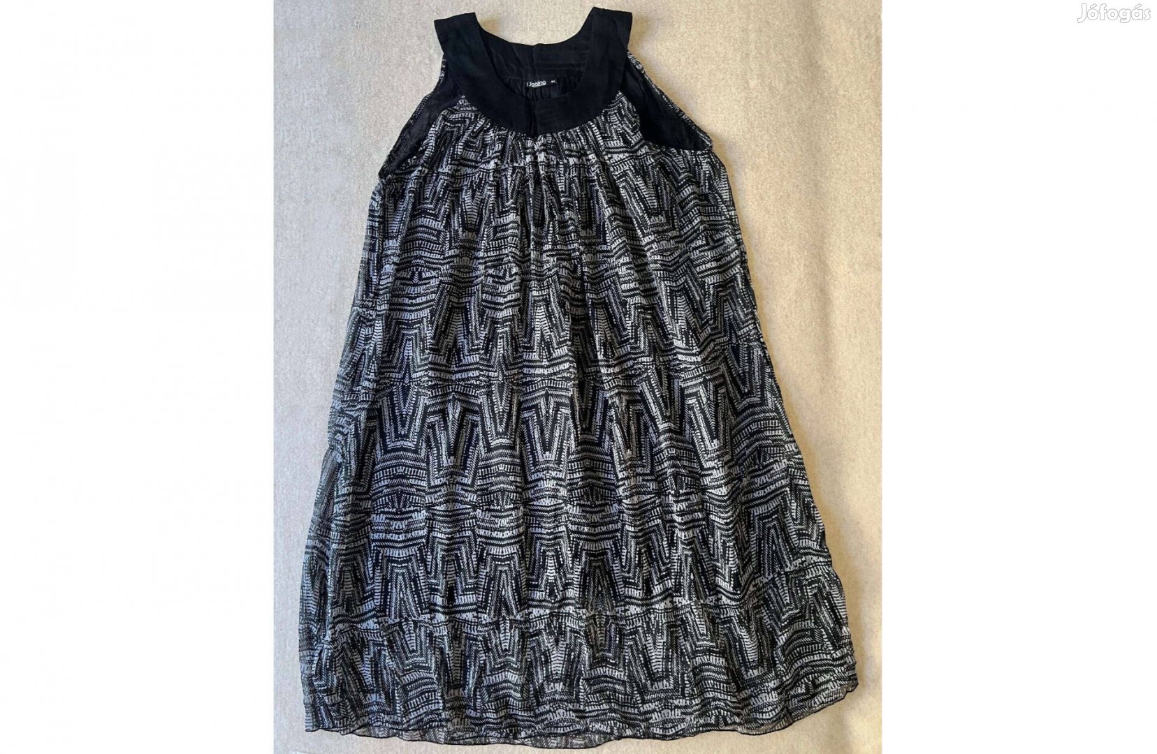 Újszerű, kiváló állapotban lévő Jamina márkájú női ruha eladó. A KiK Textil és Non-Food Kft. által forgalmazott márka. A ruha pántos különleges fazonú, egyenes szabású, alsószoknyával bélelt, belebújós.