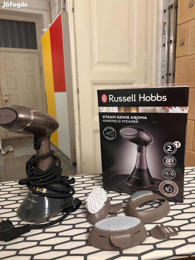 Eladó egy teljesen új, soha nem használt Russell Hobbs Steam Genie Aroma kézi ruhagőzölő.