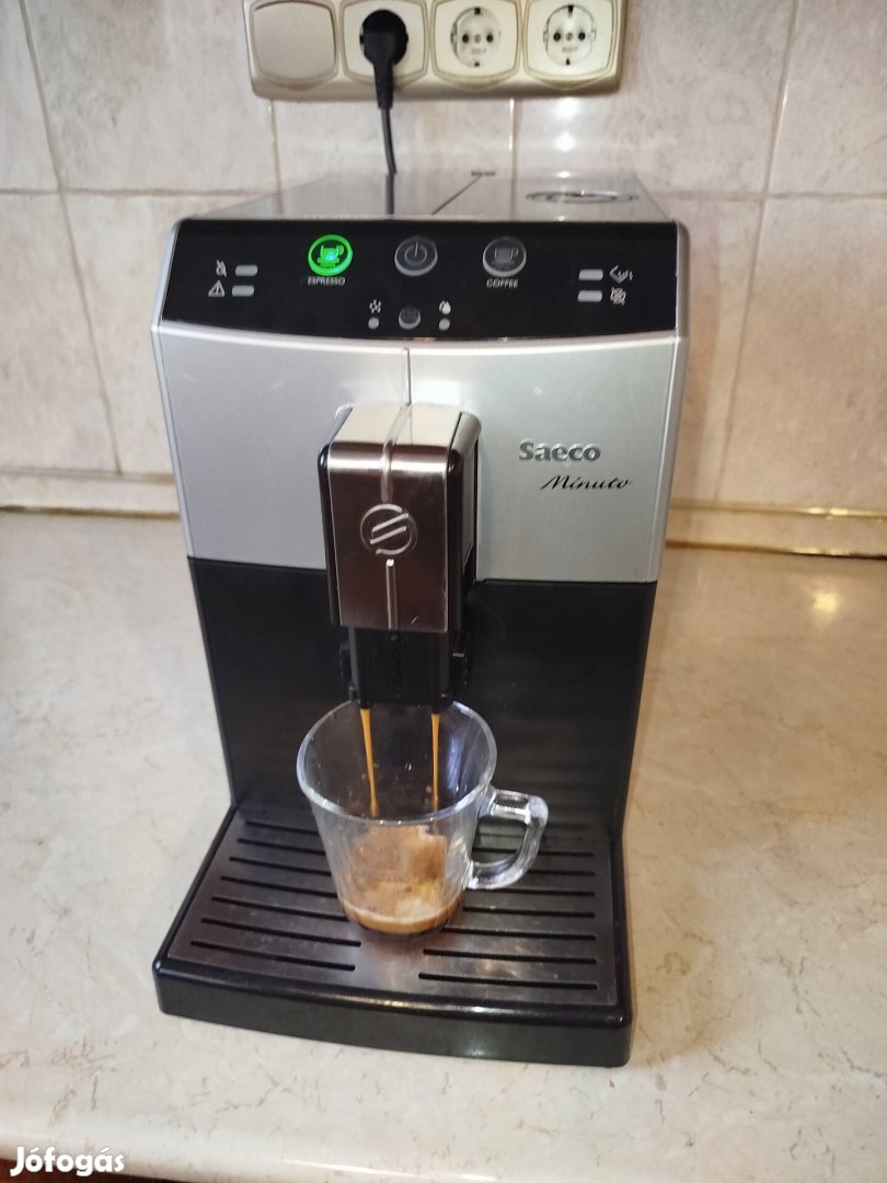 Saeco Minuto automata kávéfőző , darálós kávégép rendszeresen karbantartott keveset használt, tökéletesen működő állapotban eladó.