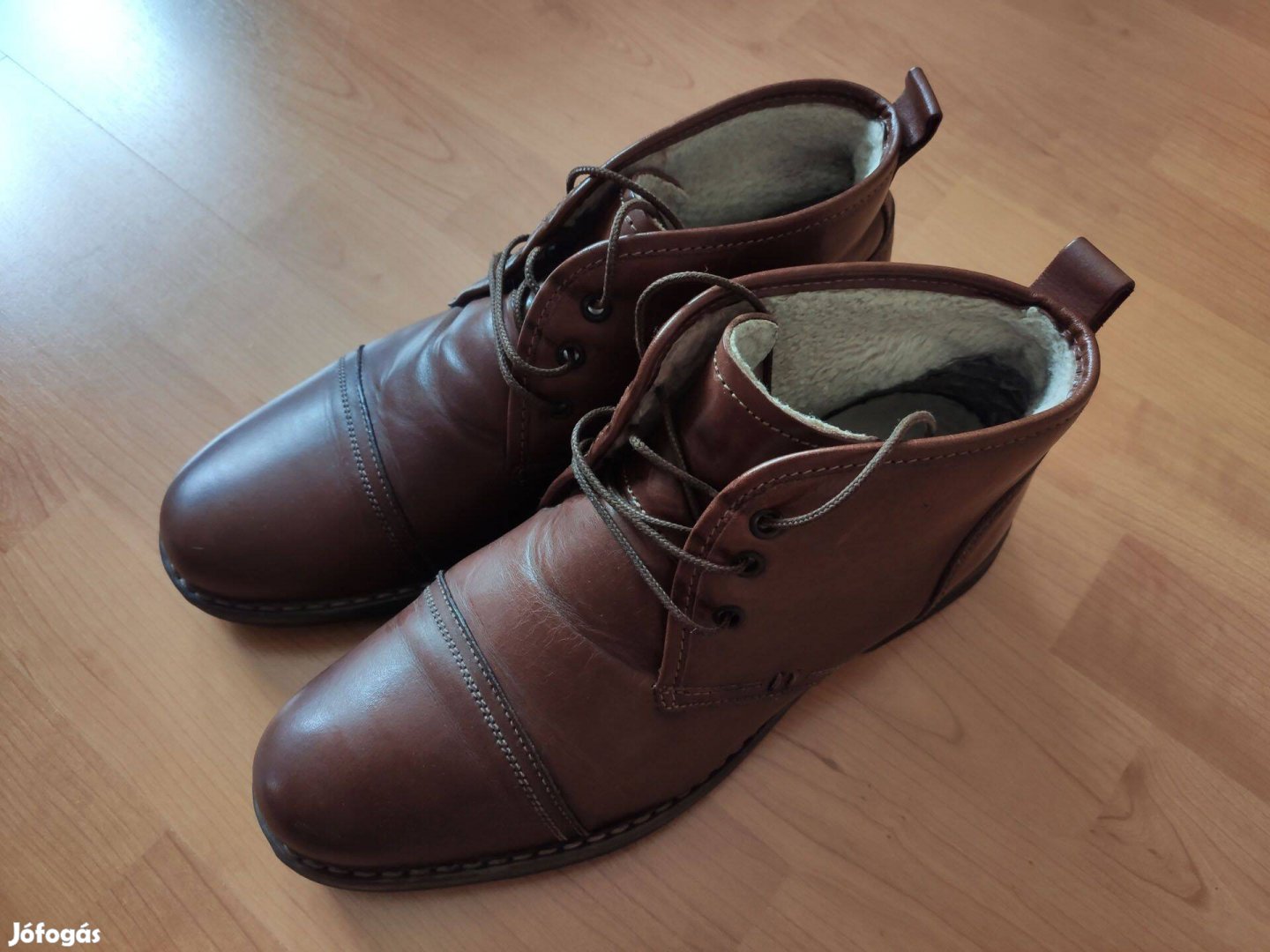 Megkímélt, képeken látható állapotban. Belülről a sarok és az orr résznél használat jeleit mutatja kopás formájában.