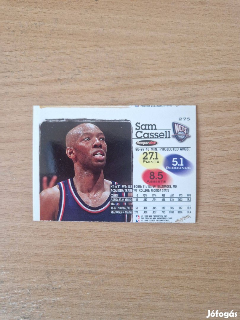 Eladó Sam Cassell New Jersey Nets Skybox Hoops 1997-98 Error Card #275 kosaras kártya, hibás nyomtatás, hibátlan állapotban, budapesti személyes átadással, Revolutra utalás esetén postázom is Foxpost-tal.