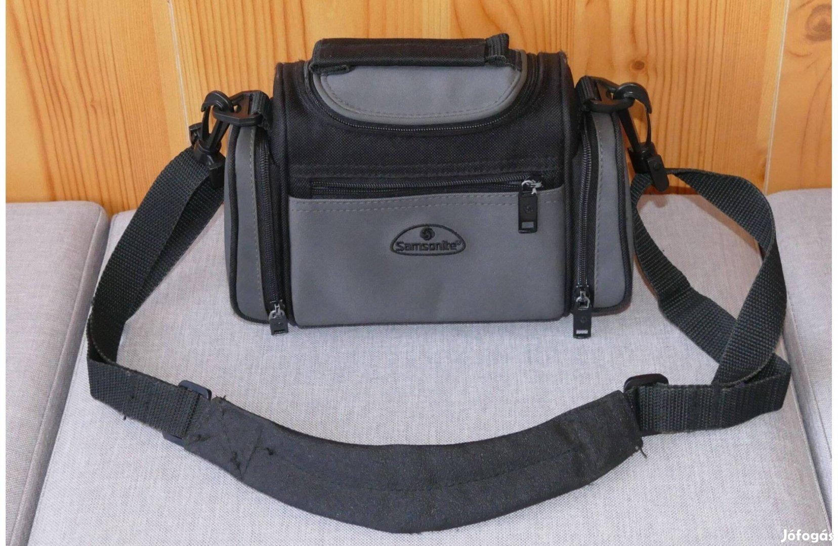 Eladó Samsonite fényképezőgép táska. Kis méretű, oldalán két kisebb zseb akkumulátoroknak, elején és belsején kis zsebek kártyáknak, övre is fűzhető. A nagy belső zsebbe kompakt fényképezőgép fér el inkább pl. TZ200, RX100 vagy kicsivel nagyobb méretű készülék pl kis milc Nikon, Olympus fényképezőgép.