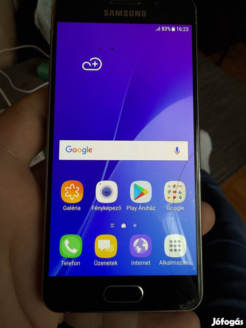 Eladó a képen látható Samsung telefon. A kijelzőn található egy hajszál repedés, de mükődését nem befolyásolja.
