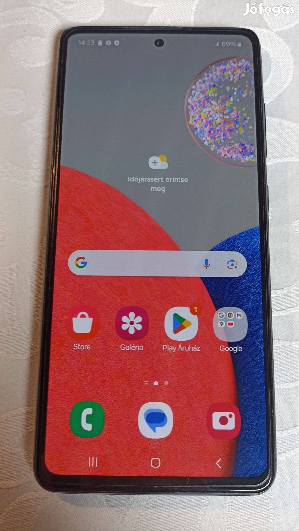 Eladó egy 2 éves, hibátlanul működő Samsung A52s mobiltelefon 128 GB memóriával egy kiegészítő 128 GB-os SD-kártyával együtt. Használat során a hátlapján kisebb karcolások keletkeztek, viszont a képernyő jó állapotban van, kijelzővédő fóliával ellátott.