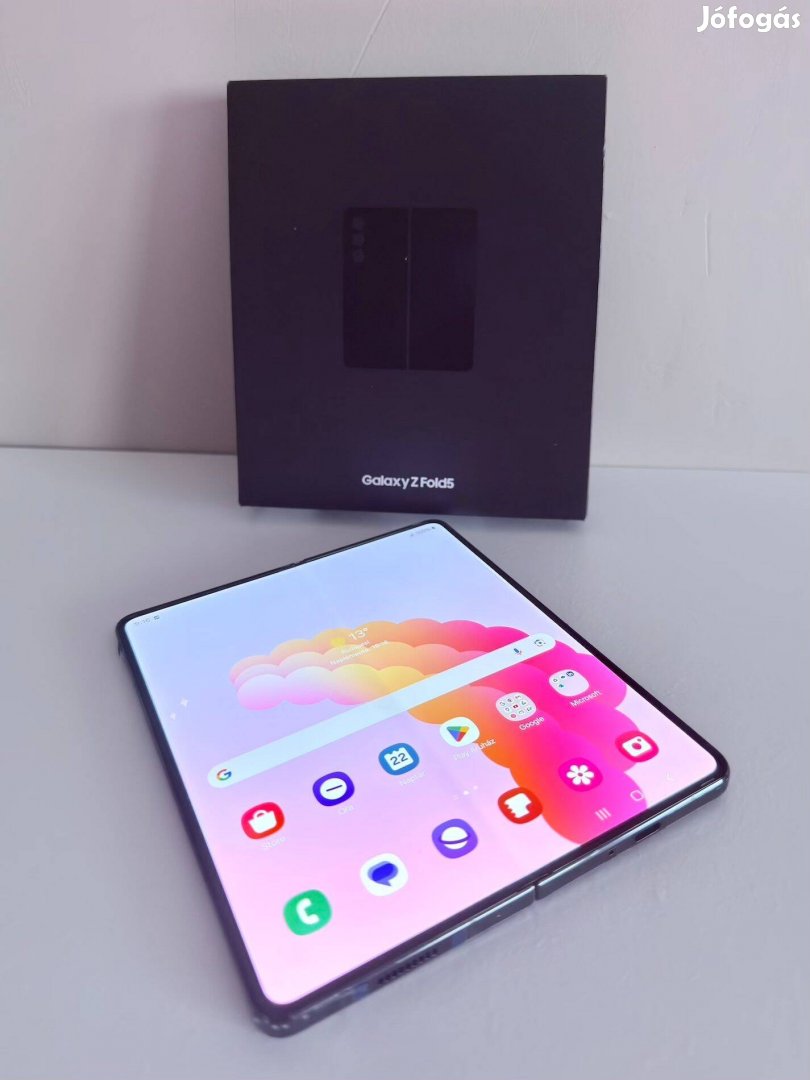 Újszerű, hibátlan állapotú Samsung Galaxy Fold 5, kártyafüggetlen telefon, fekete színben, 512 GB háttértárolóval.