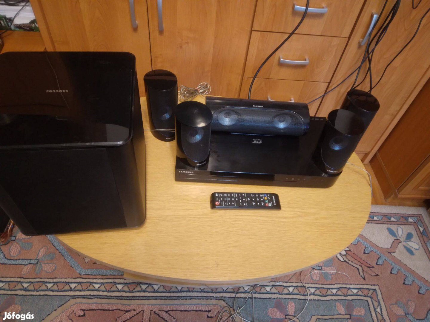 Eladó a képen látható Samsung 3D házimozi rendszer működőképes állapotban távirányítóval. Az egyik hangfal csatlakozó nincs meg hozzá, de van hozzá szerkesztve 1db ( az utolsó képen) látható. A mélynyomó teteje meg van kopva ( fotóztam). A 3D funkciót TV hiányában nem tudtam kipróbálni, mert nincs hozzá TV-m. Posta megoldható, de csak előreutalás esetén. Utánvét nincs! A terméket nem viszem sehova, csere nem érdekel! Az ár Fix! Bp.XVII.ker. Rákoscsaba