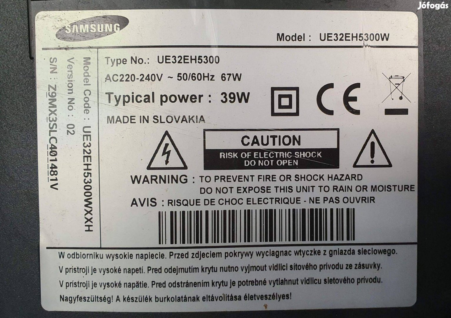 Samsung UE32EH5300 LED LCD tv mainboard eladó