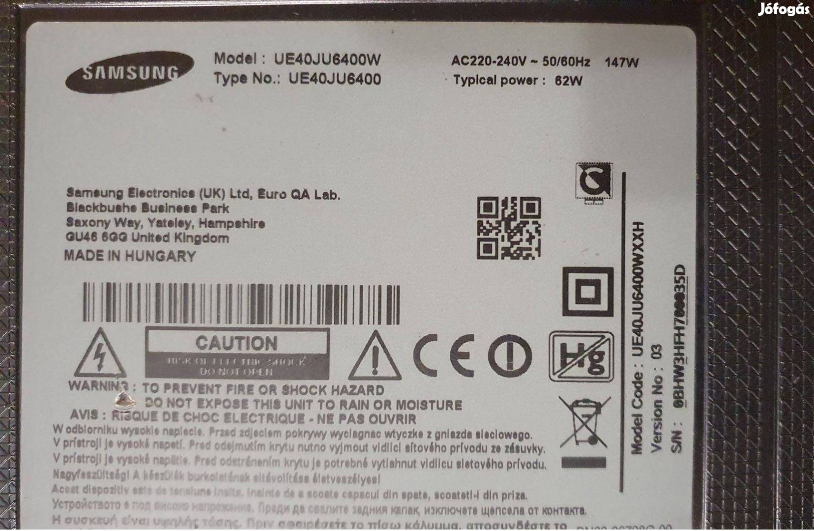 Samsung UE40JU6400W LED tv panelek alkatrésznek UE40JU6400
