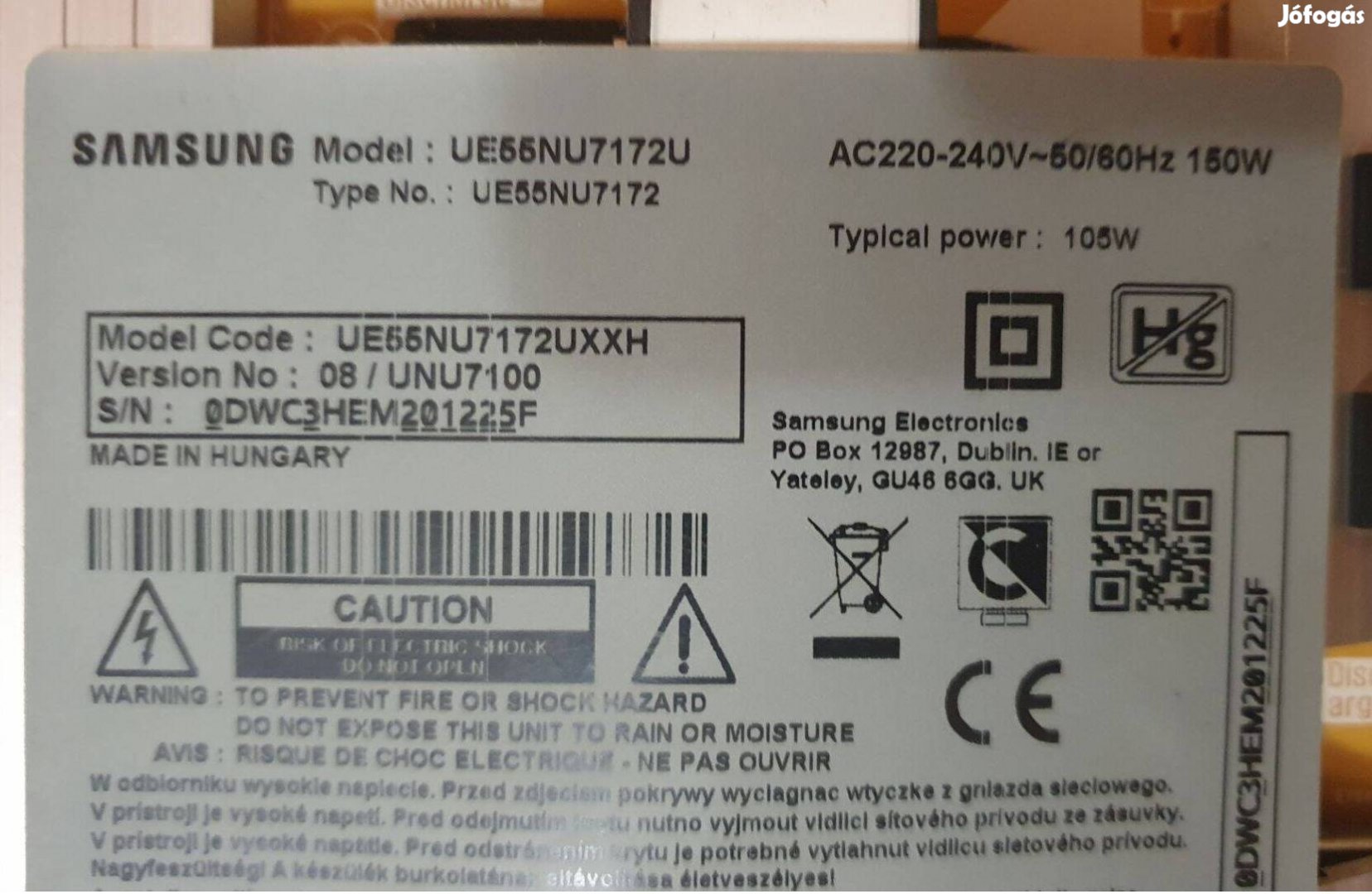 Samsung UE55NU7172U LED LCD tv panelek alkatrésznek UE55NU7172