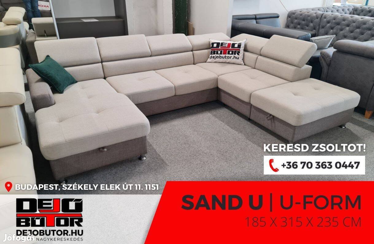 Sand sarok kanapé bútor ülőgarnitúra 185x315x235 cm ualak natúr fekvő 140x200 cm ágyazható ágyneműtartós 840.000 Ft