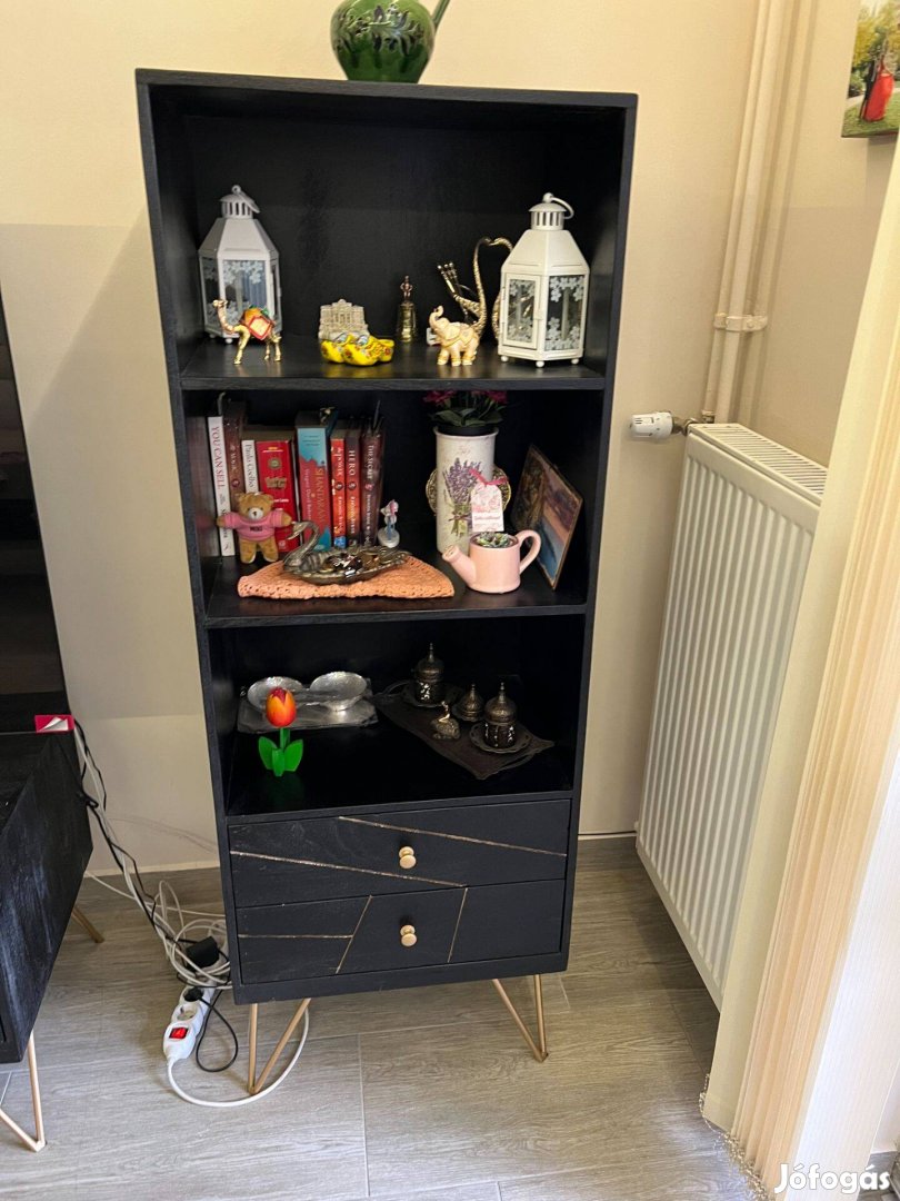 Fekete, fából készült sarokszekrény arany fém béléssel, xxxlutz-tól vásárolt, kiváló állapotban.
