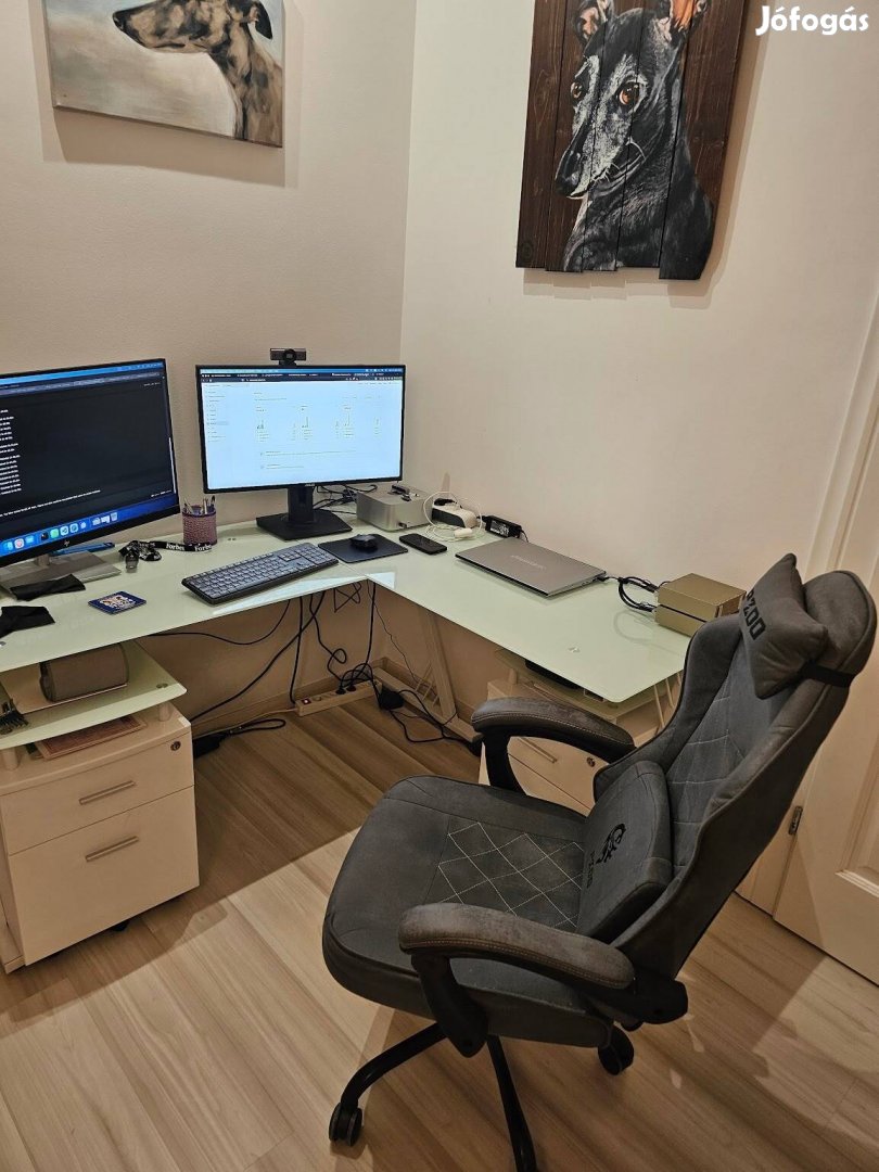 Eladóvá vált szeretett íróasztalom , vastag üveg lappal és 2db fiókos kis szekrénnyel . A forgószék ajándék...
