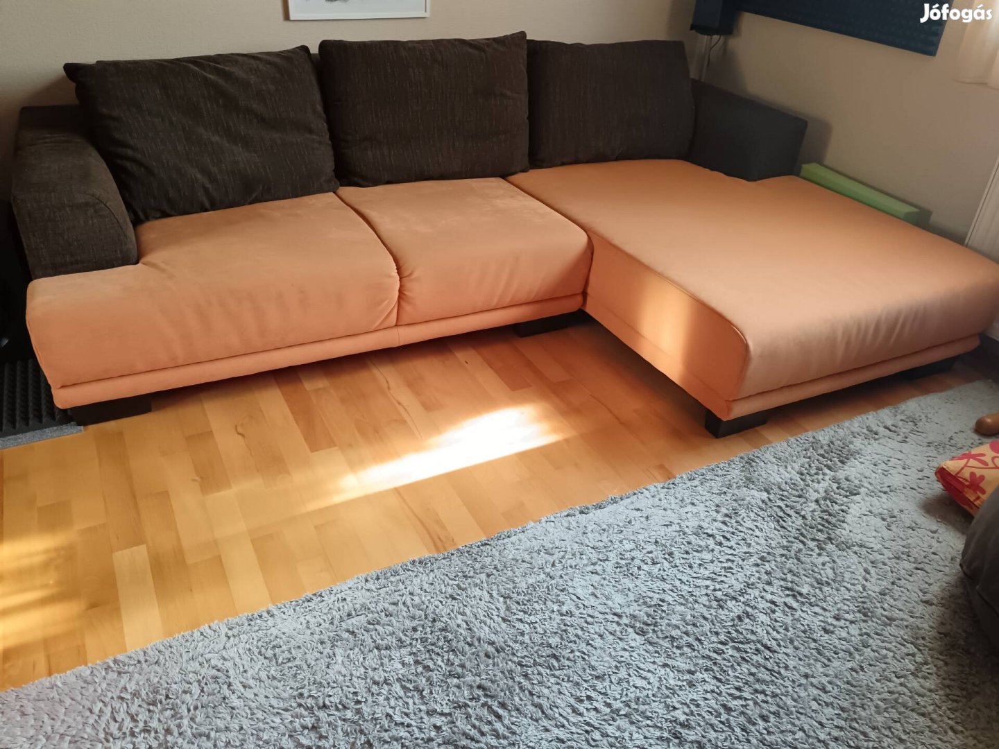 Eladó a címben említett, jó állapotú, valóban alig használt,sarokkanapé. könnyen szétszedhető kihúzható, , rugós és textilbőr ülőfelülettel (a lazac színű) . A barna pedig strapabíró szövetből van. nincs szakadás vagy törés sehol. ágynemű tartó is van benne. 260x170x85 a magasság pedig a háttámlánál 70cm. A szállításban nem tudok segíteni, a bepakolásban igen.