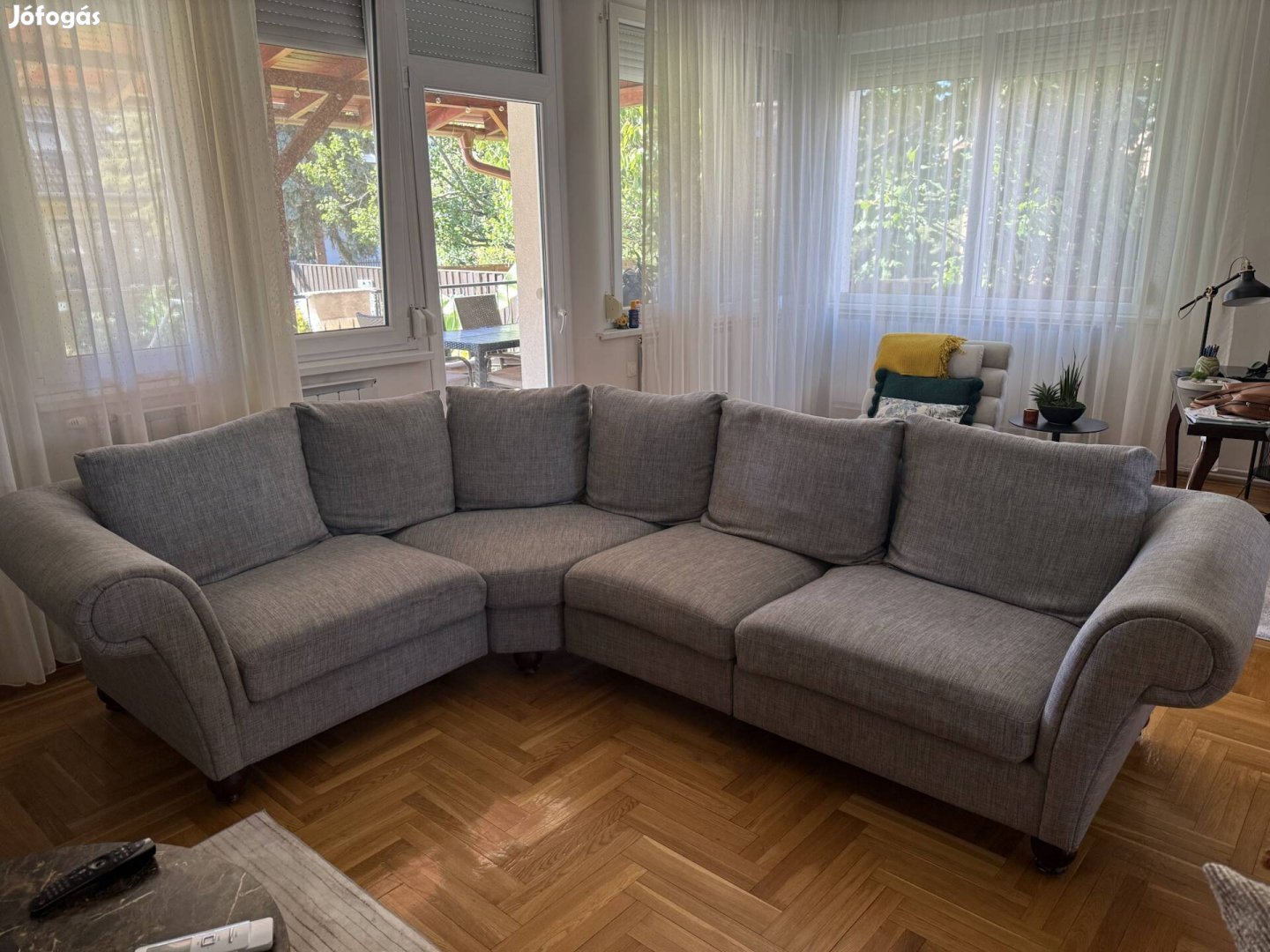 2,6 x 2,1 méteres, 4 részből álló sarokgarnitúra eladó. Használt, egyik ülőrészen elöl kisebb szakadás, egyik ülőpárna zippzarja nem működik, de nem látható. Ülő és hátpárna huzatai levehetőek. Nem kihúzható kanapé.