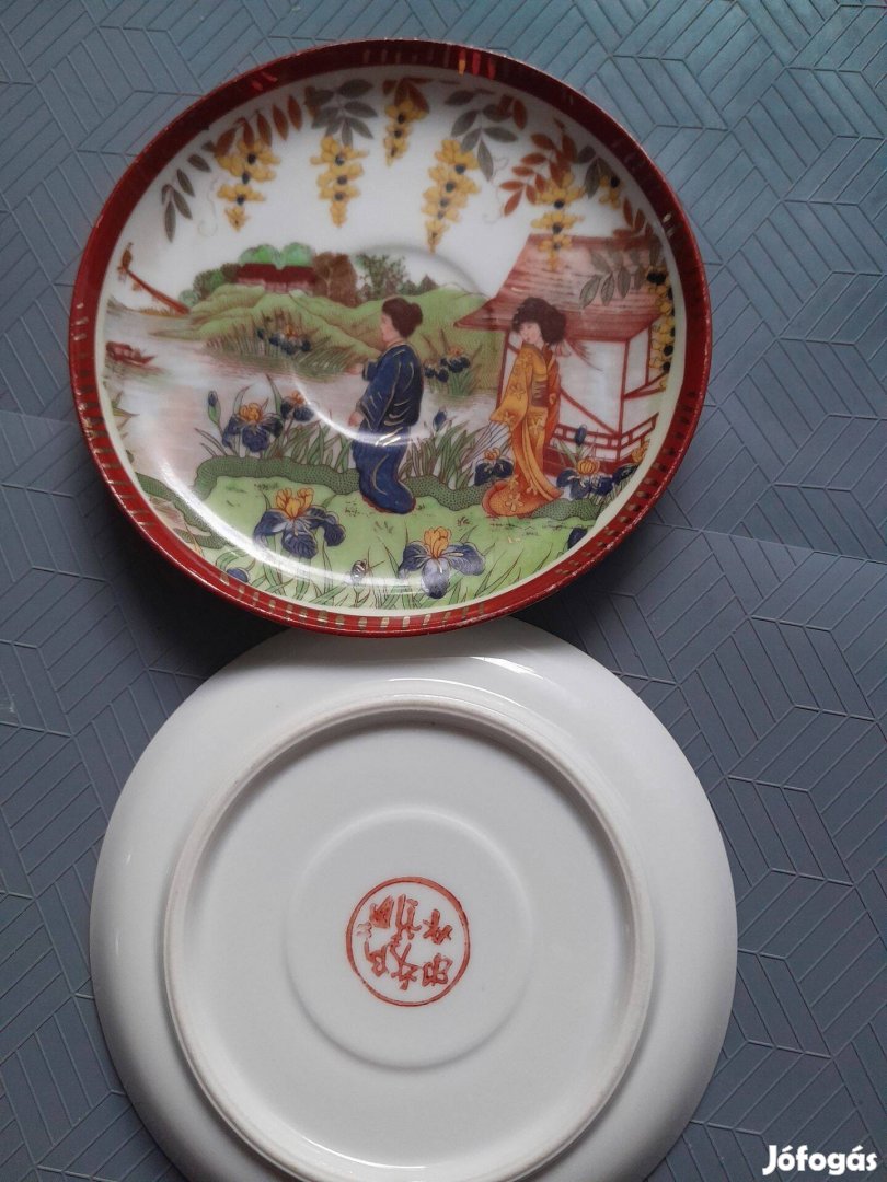 2 db antik japán csészealj, mely kézzel készített, Satsuma stílusú