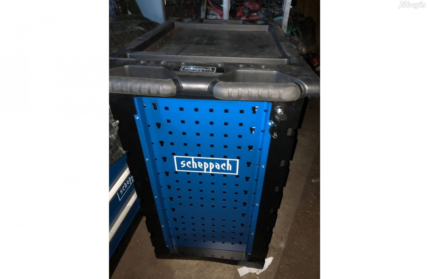 A Scheppach TW 1000 egy professzionális, teljesen fém műhelykocsi, amely alkalmas mind az otthoni, mind pedig iparosi műhelyekbe, garázsokba, szervizekbe stb. Előnyei közé tartozik a masszív szerkezet, a keményített műanyag burkolatú sarkak és élek, az apróbb dolgok elhelyezésére szolgáló mélyedésekkel kialakított masszív műanyag munkaasztal, melynek oldalai mindig a helyén tartják a szerszámait. A könnyű kezelhetőséget a két puhított markolat és a négy nagy kerék biztosítja. Ezek gumírozottak, melyből kettő, fékkel ellátott bolygókerék. A csúcsminőség a fiókok könnyű manipulációjánál is tapasztalható. Ezek nagyon robusztus csúszó vasalatokkal vannak ellátva, így könnyen mozgathatók még teljes súlyterhelésnél is. Természetesen az önnyítódás elleni szerkezettel és zárral is rendelkeznek. Az oldalfalak lyukacsos lemezből lettek kialakítva, ami remek lehetőséget biztosít további szerszámok, tartók, vagy akár polcok rögzítésére is. Négy fiók teljes felszereltséggel van ellátva általánosan használt szerszámokból (dugókulcs készletek, fogók, csavarhúzók, kalapácsok, különböző további kulcskészletek, villanyszerelő eszközök stb.), a maradék három fiók, igény szerint feltölthető további szerszámokkal. Minden szerszámnak külön kialakított helye van, így mindig kéznél van keresgélés nélkül.