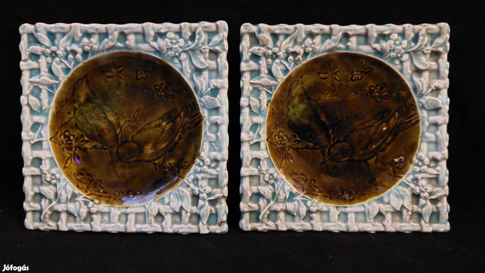 Schütz Cilli fajansz, szögletes, madaras tálkák, 2 db