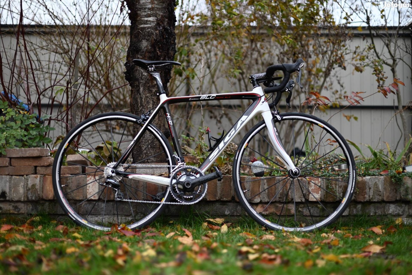 Eladóvá vált full karbon Siga Slc Team edition országútim. A vázon(54cm) találhatóak kopások(+ fotókért privátban lehet keresni), de törve/repedve nincs! A rajta található Shimano Dura Ace váltók hibátlanul, precízen és gyorsan váltanak. Ultegra váltókarok lettek felhelyezve a biciklire, de a fékek ismét Dura Aceek, a hátsó, színte vadi új. Continental Grand Prix 5000ren gurul (pár száz kilométer van bennük) amelyek egy pár Mavic Ksyrium Sl helyezkednek. A kormány és nyeregcső kilettek cserélve, a könnyebb súlyért karbon Stealthevo prokra. A nyereg egy Selle Italia, 125g, karbon. Hajtás egy Fulcum Racing Torq Rs. Teljes súlya 7.3kg pedálokkal, kb. 7-7,1 kg lehet nélkülük. A pedálok, kulacstartó és a computer tartója nem járnak a biciklihez. Megtekinthető kispesten, nincs posta, szállítás!