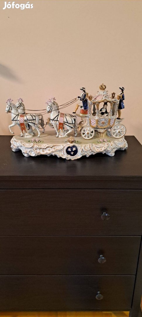 Eladó egy szép állapotú 50cm hosszú monumentális Sitzendorf porcelán lovashintó.