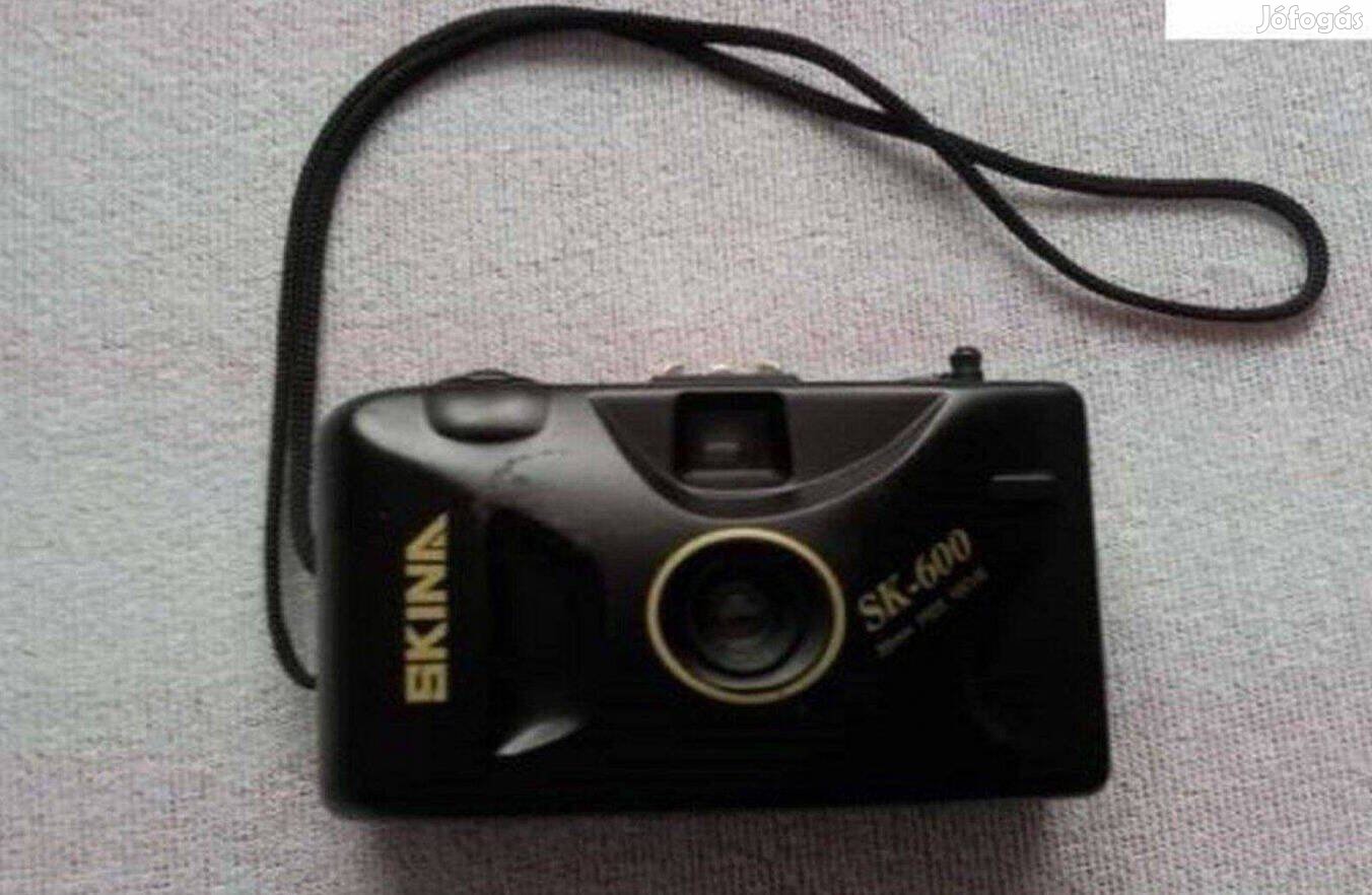 Skina SK-600 35mm filmes,free focuszos fényképezőgép eladó. Focus Free Camera, mechanikus filmtovábbítás és visszacsévélés, középérintkezős vakupapucs, átnézeti kereső, műanyag váz, pillanatzár.