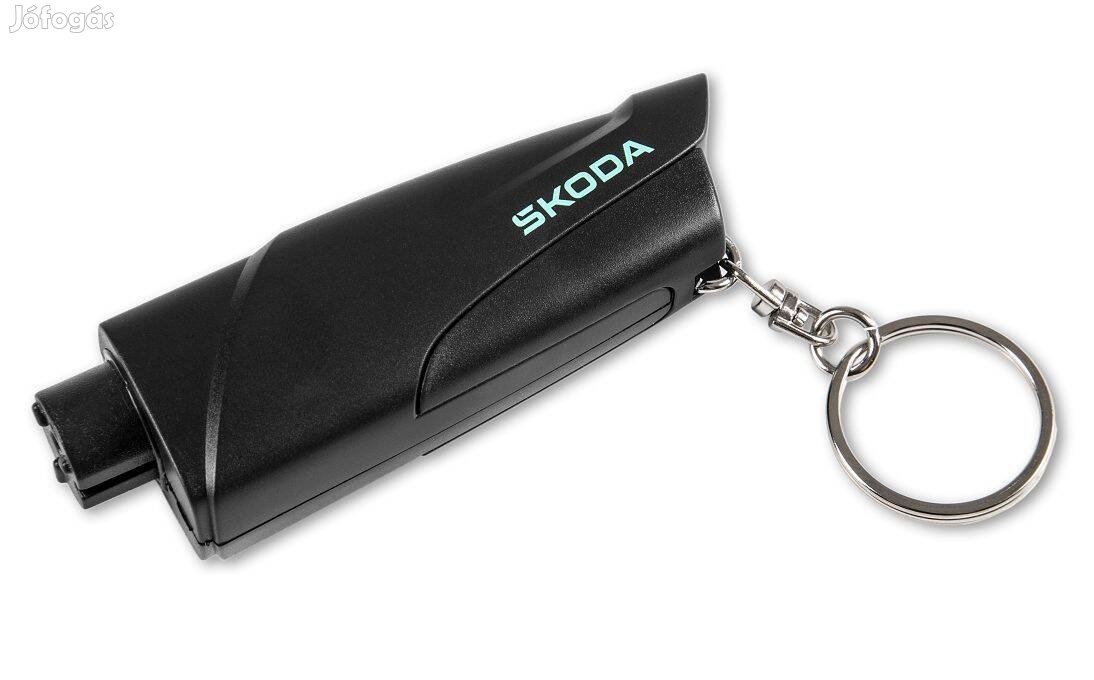A cseh Skoda autógyár életmentő kulcstartója Vészhelyzeti menekülési eszköz praktikus kulcstartó formájában. Nyomtatott Skoda logóval. A kulcstartó két funkcióval rendelkezik: egy kivehető klippel fedett vágóeszköz az elakadt biztonsági övek elvágásához és egy ütőtű baleset esetén az autó oldalsó ablakainak betöréséhez. Az ütőtűt egy rugós fejnek az autó ablakához való nyomásával aktiváljuk. Vész esetén meg kell nyomni addig, amíg be nem kattan. Eredeti gyári termék, vadonatúj!