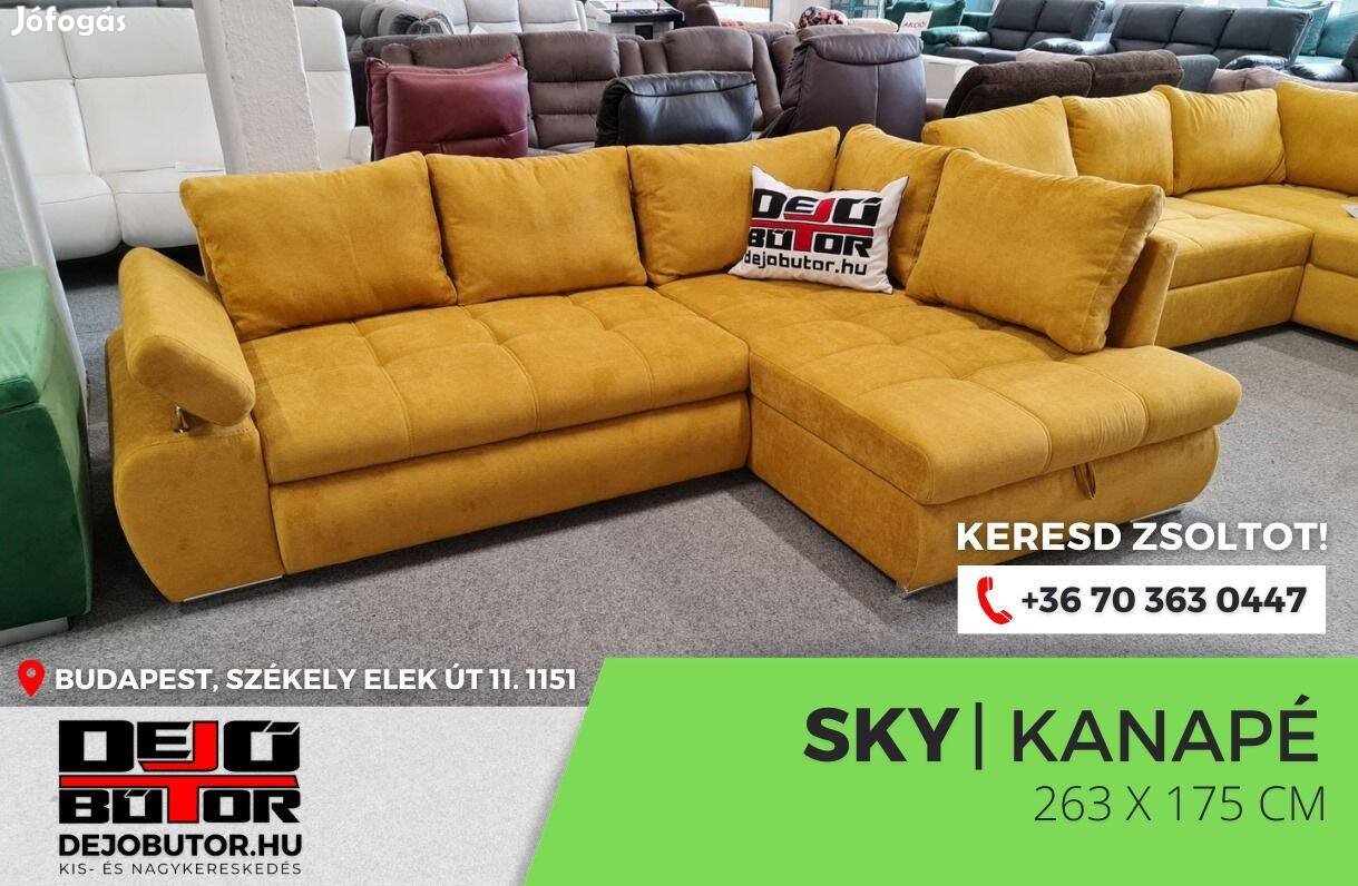 Sky sarok kanapé ülőgarnitúra 263x175 cm rugós ágyazható mustár bútor ágyneműtartós 380.000 Ft