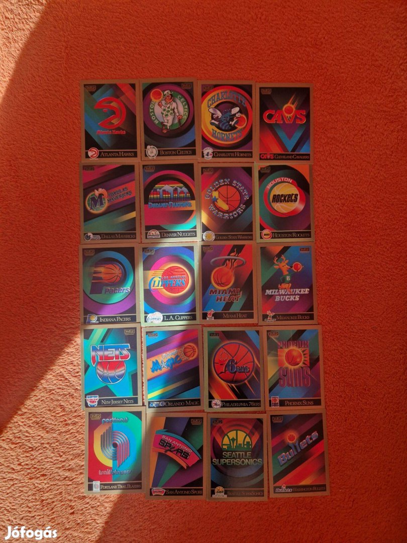 Eladó 20db Skybox 1990-91 Team logo kosaras kártya, hibátlan állapotban, budapesti személyes átadással, Revolutra utalás esetén postázom is Foxpost-tal.