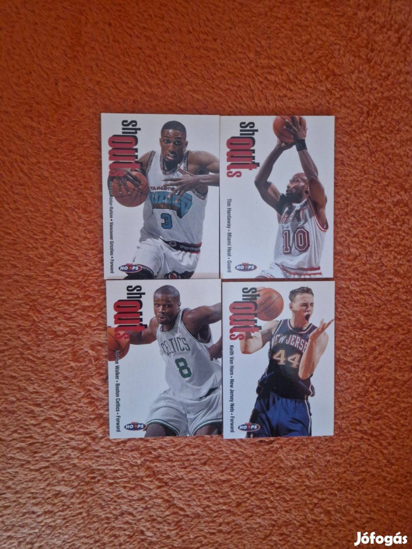 Eladó 4db Skybox Hoops 1998-99 Shout Outs kosaras kártya, hibátlan állapotban, budapesti személyes átadással, Revolutra utalás esetén postázom is Foxpost-tal.